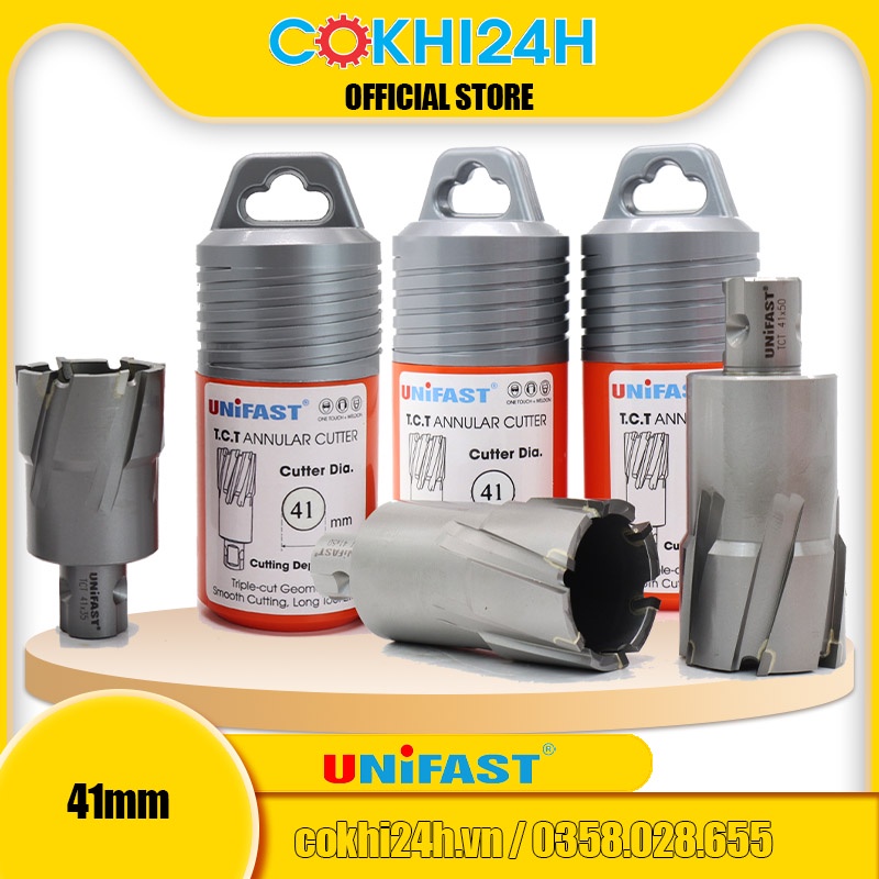 Mũi khoan từ rút lõi phi 41mm Unifast HSS 41x25 / TCT 41x35 / TCT 41x50 là dòng mũi cao cấp sản xuất theo tiêu chuẩn công nghệ của Nhật Bản. Mũi tạo ra đường kính lỗ 41mm, độ sâu khoét tối đa gồm các chuẩn 25mm, 35mm, 50mm, 75mm, 100mm.------------------------------------