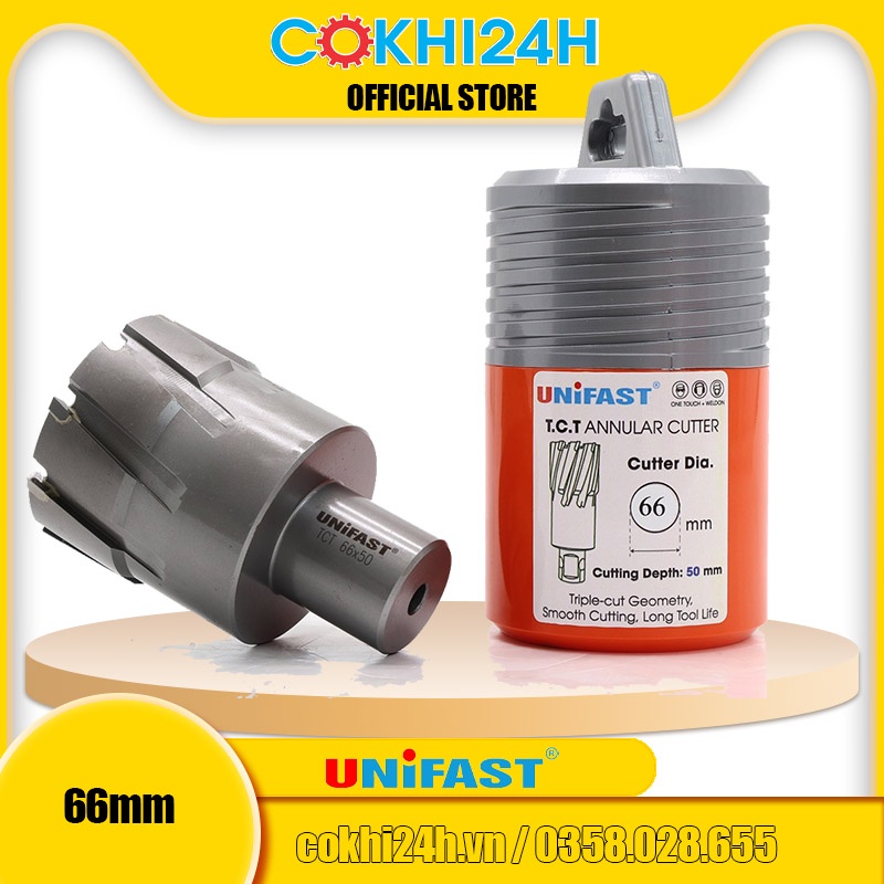 Mũi khoan từ rút lõi phi 66mm Unifast HSS 66x25 / TCT 66x35 / TCT 66x50