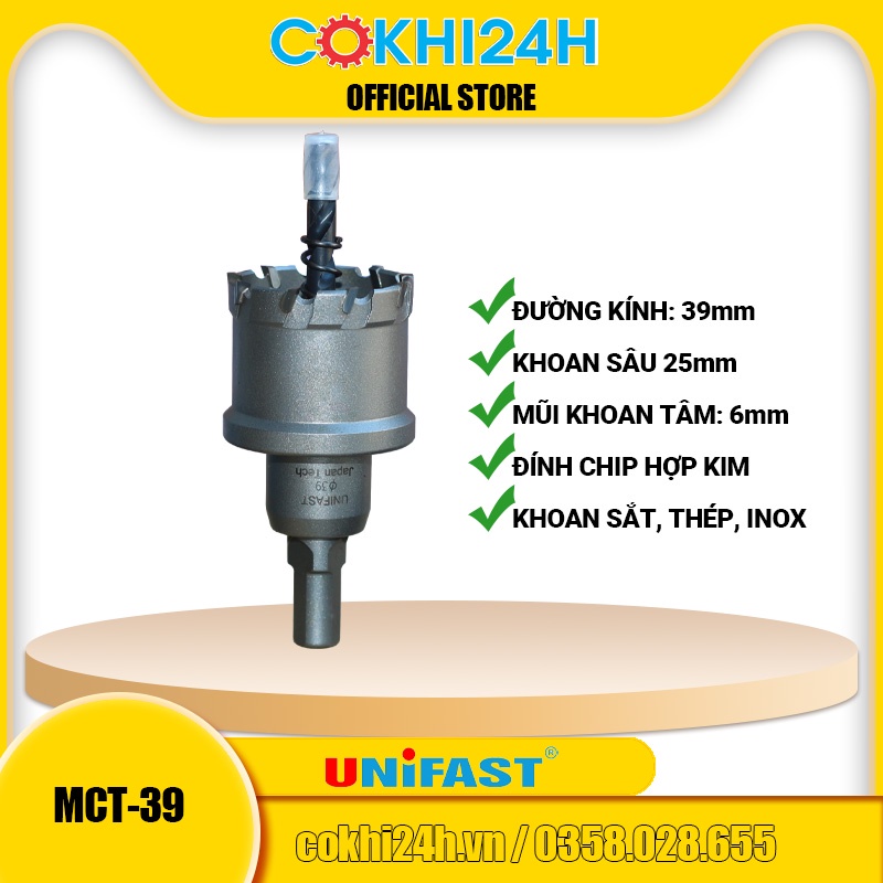Giới thiệu Mũi khoét 39mm Unifast MCT-39 hợp kim [ Phi 39 ]