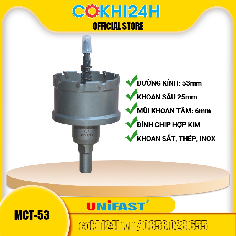 Mũi khoét 53mm Unifast MCT-53 hợp kim [ Phi 53 ]