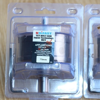 - Mũi khoét Unifast phi 75 có trang bị thêm một mũi khoan tâm 6mm giúp định vị chính xác lỗ khoan.