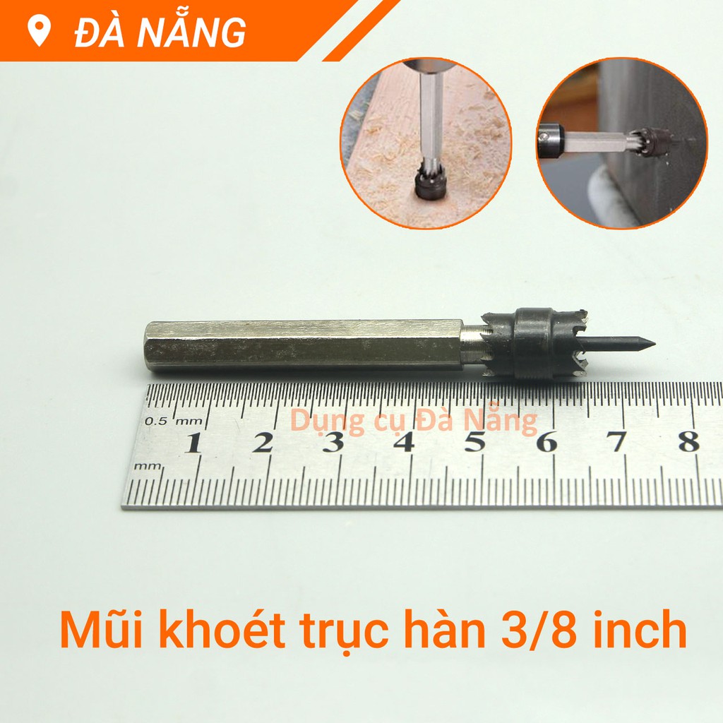 Mũi khoét kép trục hàn 3/8 inch được làm từ thép gió HSS 6542 cao cấp siêu cứng có độ đàn hồi cao, chịu nhiệt tốt. Mũi khoét là phụ kiện chuyên dùng để khoét lỗ trên kim loại và gỗ sử dụng chung với máy khoan cầm tay và máy khoan bàn. Đường kính lỗ khoét 9.5mm. Hai lưỡi khoét sắc bén, mở lỗ rất nhanh và ổn định. Gia công tỉ mỉ và đạt độ chính xác cao.Các đặc điểm, thông số kỹ thuật của sản phẩm