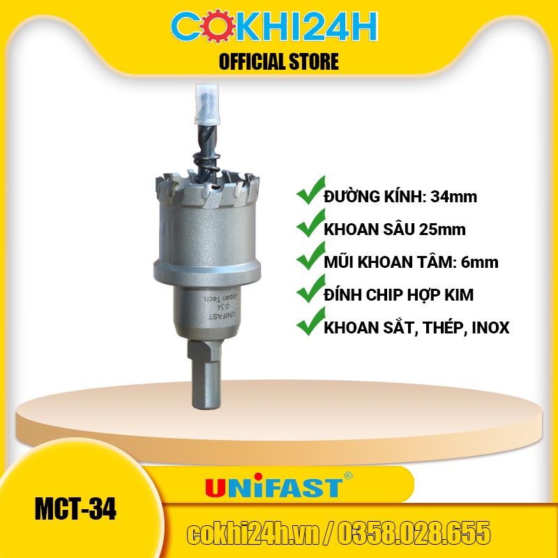 Nhà cửa & Đời sống > Dụng cụ & Thiết bị tiện ích > Dụng cụ > Hộp dụng cụ cầm tay || Mũi khoét hợp kim 34mm Unifast MCT-34 [ Phi 34 ]Còn hàng