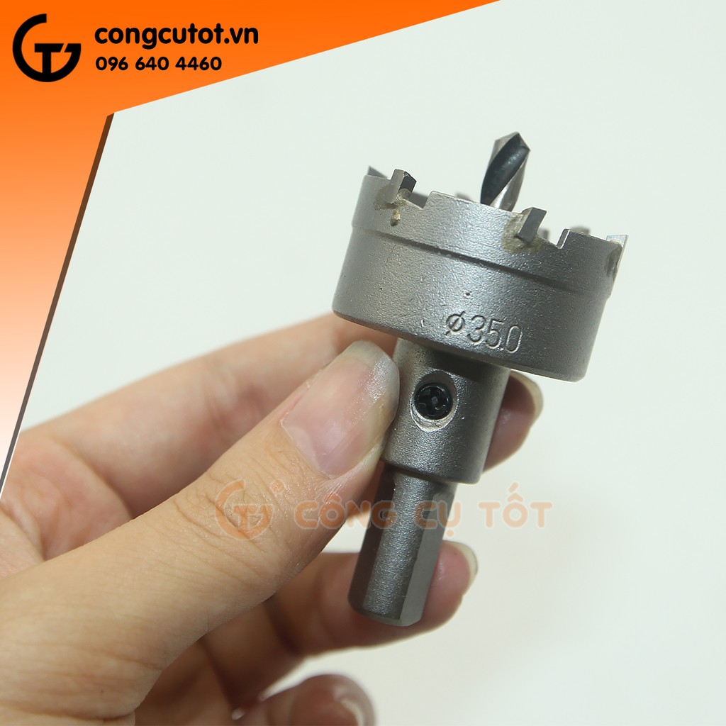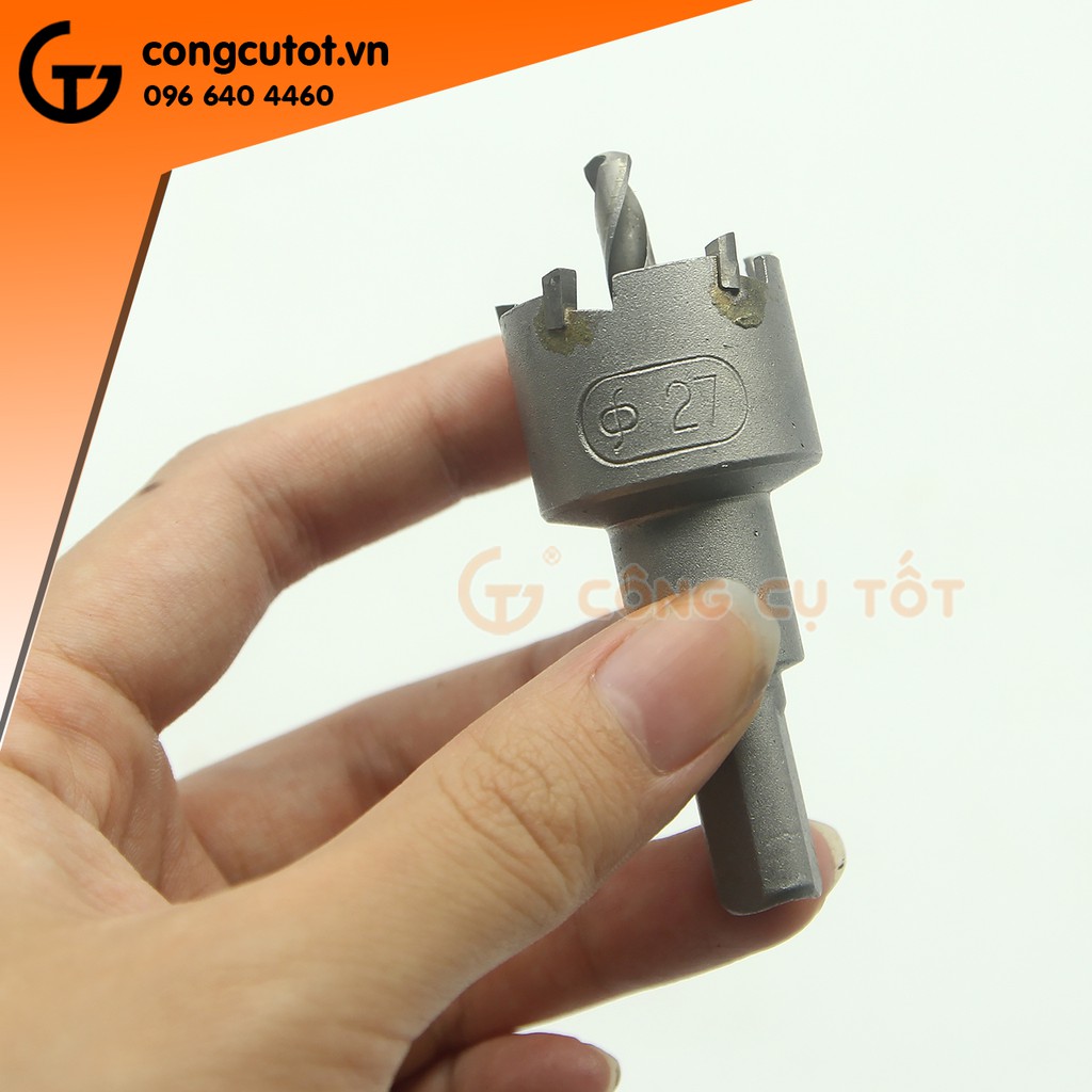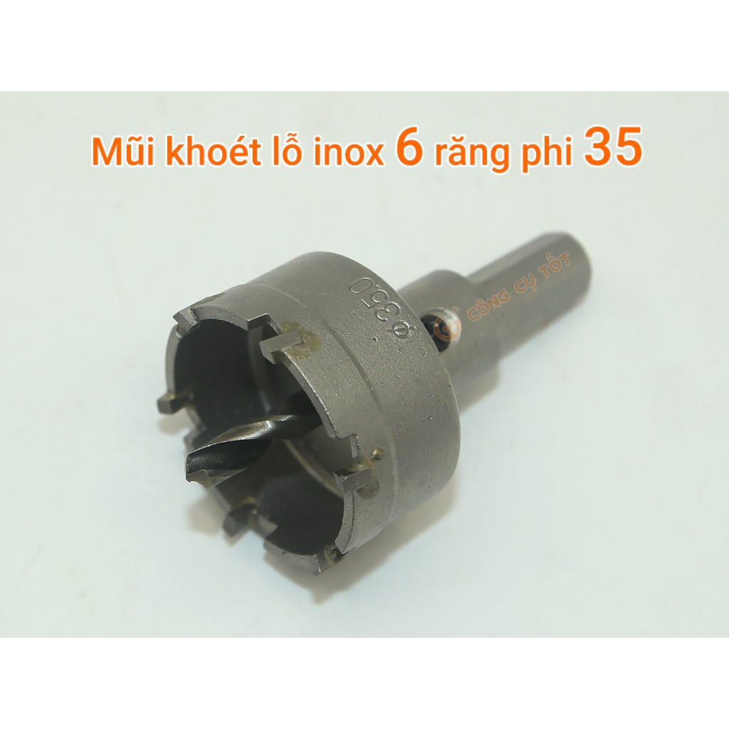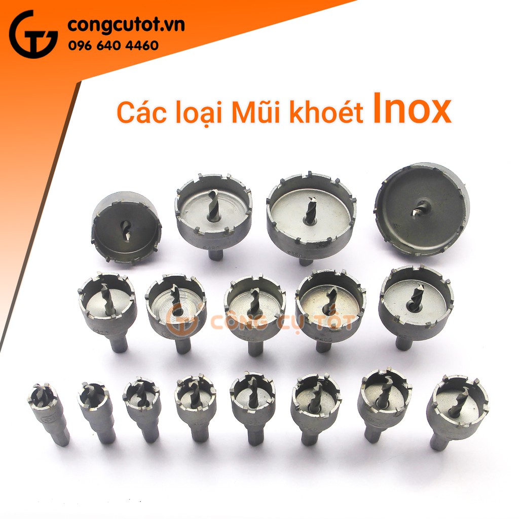 Mũi khoét inox có lưỡi cắt hình răng cưa bằng hợp kim với đường kính lỗ khoét. Sản phẩm có độ cứng cao kết hợp với mũi khoan định tâm ở giữa giúp khoét lỗ dễ dàng trên các vật liệu cứng như: sắt, thép, inox,… Chuôi mũi khoét vát 3 cạnh, kẹp bằng đầu cặp măng ranh, tương thích với mọi loại máy có chức năng khoan như: khoan cầm tay, khoan bàn, khoan đứng… Đây là phụ kiện hữu ích được sử dụng phổ biến trong ngành gia công kim loại.Mũi khoét có lưỡi cắt hình răng cưa, độ khoét sâu tối đa là 25mm
