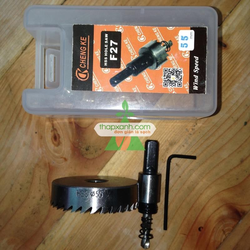 Mũi khoét Φ55 (Đường kính 55mm) là mũi khoét hoàn hảo cho kích thước rọ thủy canh (cốc thủy canh) của thapxanh, chuyên được dùng khoét lỗ trong thủy canh. Với mũi khoét này bạn dễ dàng có được một dàn thủy canh hồi lưu dùng dung dịch thủy canh cho rau ăn lá hoàn hảo.