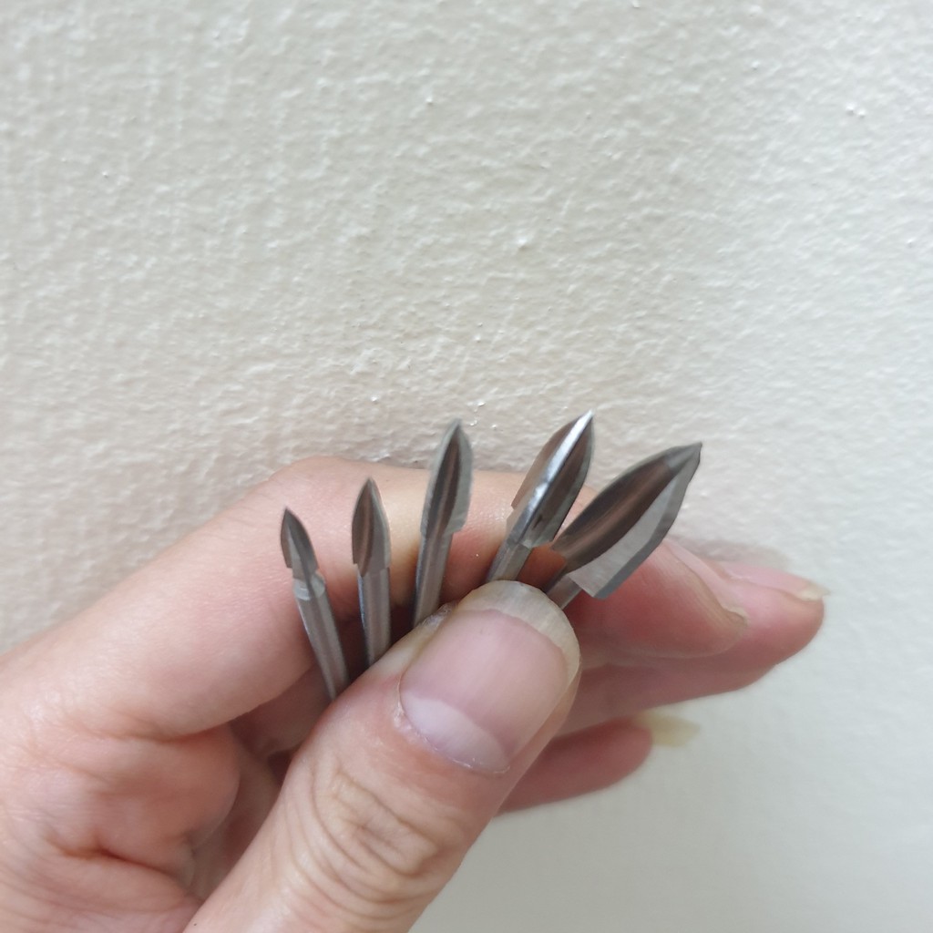 mũi lũa gỗ điêu khắc, chạm trổ mài khắc thép HSS hay mũi khắc tỉa gỗ 3 cạnh