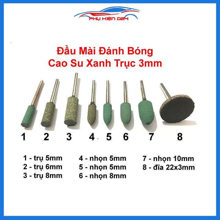 Mũi mài cao su đầu mài cao su xanh chân 3mm đánh bóng gỗ nhựa thạch cao✯ ✯ ✯ Đặc Điểm: