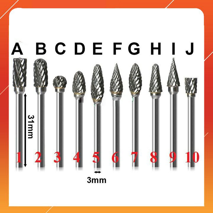 Nhà cửa & Đời sống > Dụng cụ & Thiết bị tiện ích > Dụng cụ > Cưa, máy cắt & máy mài || Mũi mài khắc hợp kim trục 3mm. (A069)Còn hàng