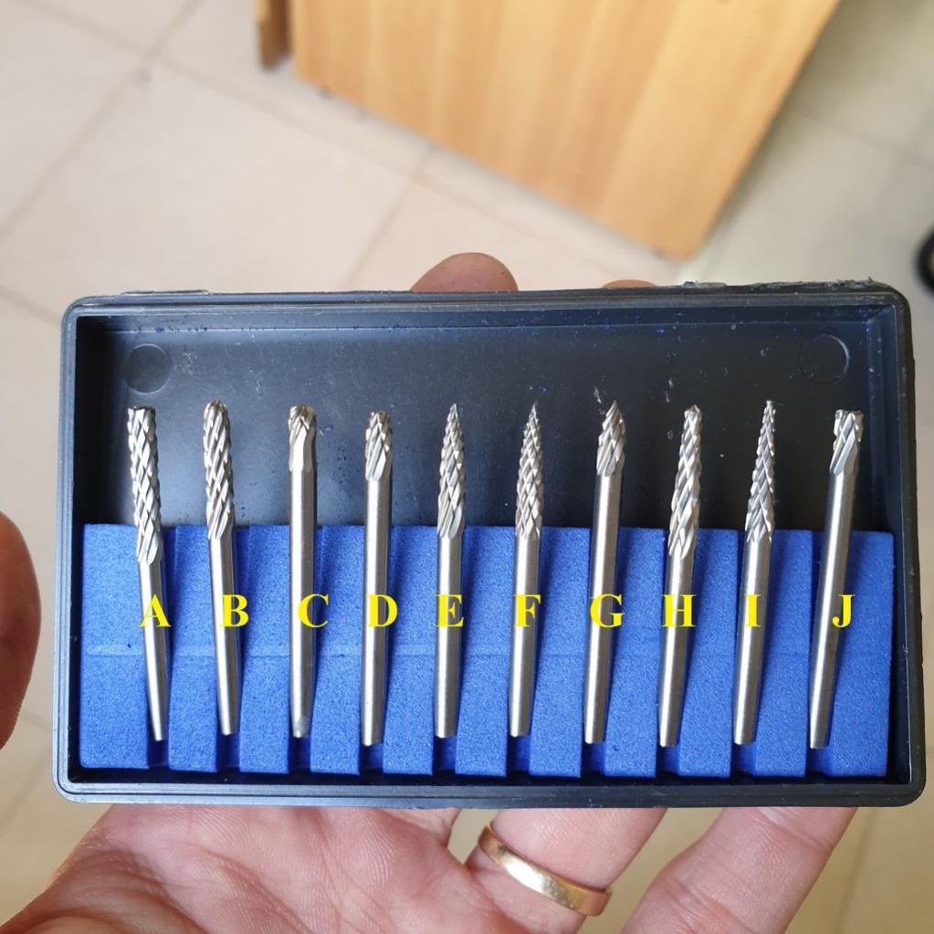 Các đầu được chế tạo từ Tungsten, cứng và rất sắc. kích thước trục 3mm, thích hợp dùng cho các loại máy khoan cầm tay mini, dremel và các loại máy khác có tốc độ vòng quay từ 6.000 - 50.000 vòng.