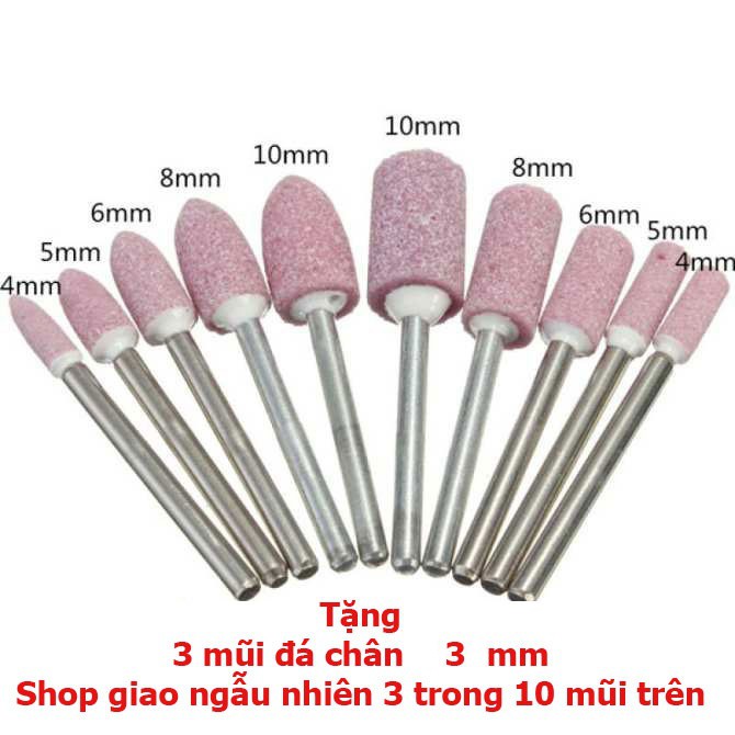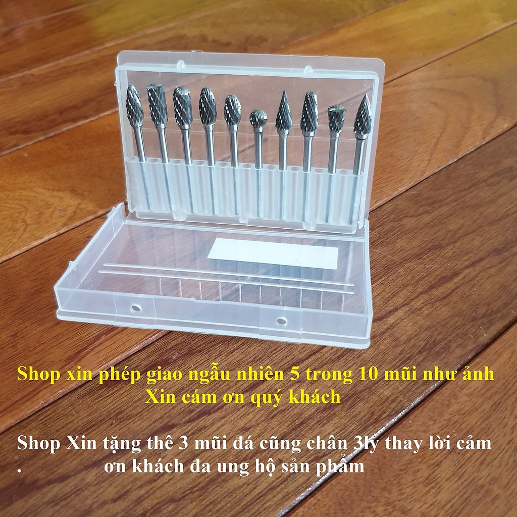 gói 5 mũi gồm: 5 mũi giao ngẫu nhiên 5 trong 10 như hộp + 3 đá mài mini