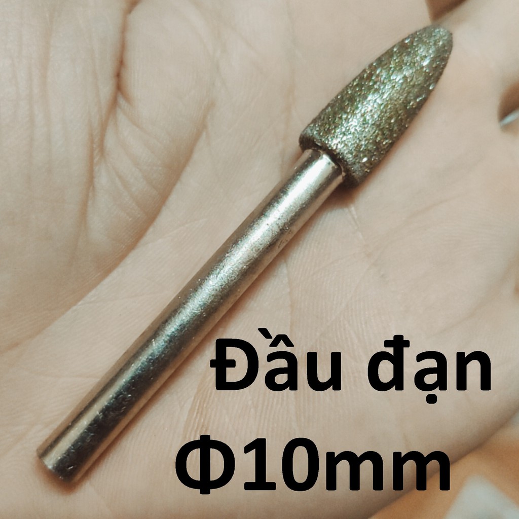 Mũi mài kim cương, mũi mài khắc đá, ngọc, hình đầu đạn 10mm, cán 6mm