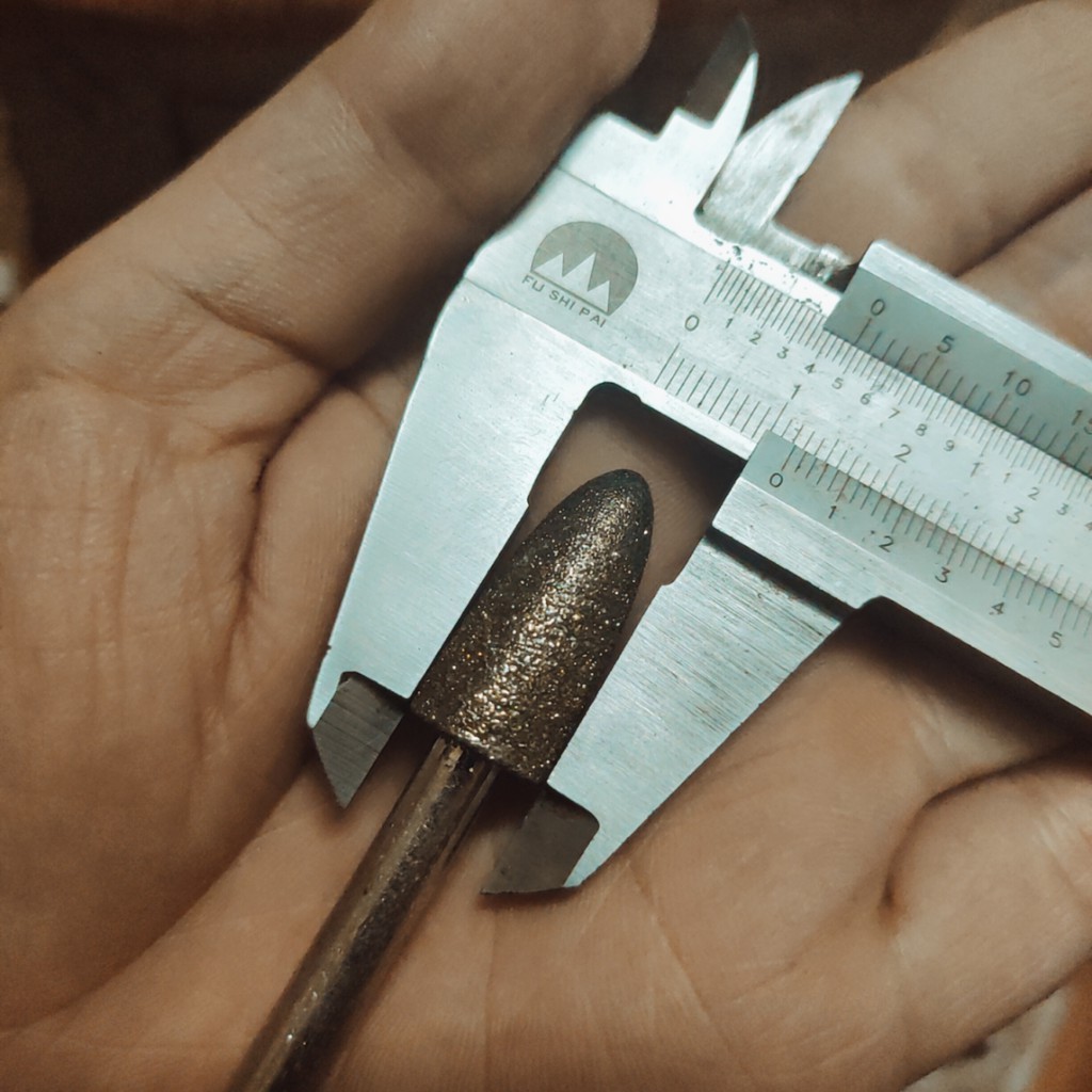 Mũi mài kim cương, mũi mài khắc đá, ngọc, hình đầu đạn 12mm, cán 6mm