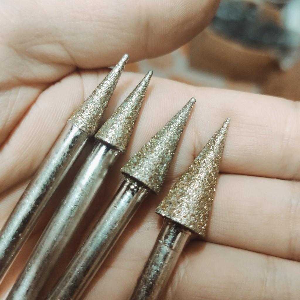 Giới thiệu Mũi mài kim cương, mũi mài khắc đá, ngọc, hình nhọn 6-8-10-12mm, cán 6mm