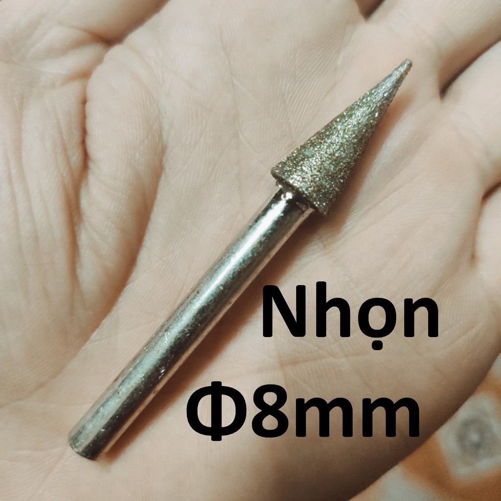 Mũi mài kim cương, mũi mài khắc đá, ngọc, hình nhọn 6-8-10-12mm, cán 6mm