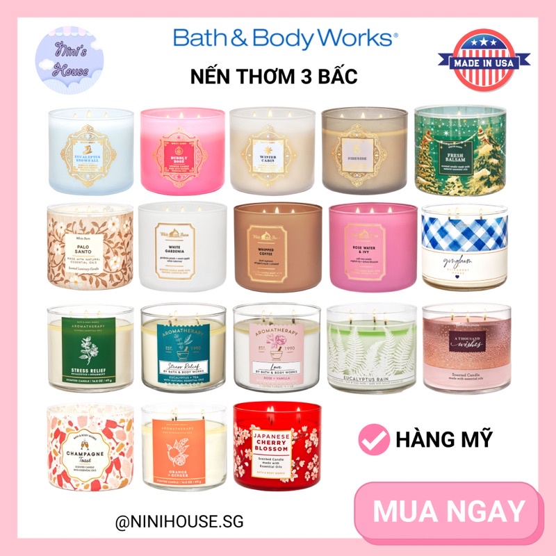[Mùi Mới] Nến thơm 3 bấc Bath and Body Works USA