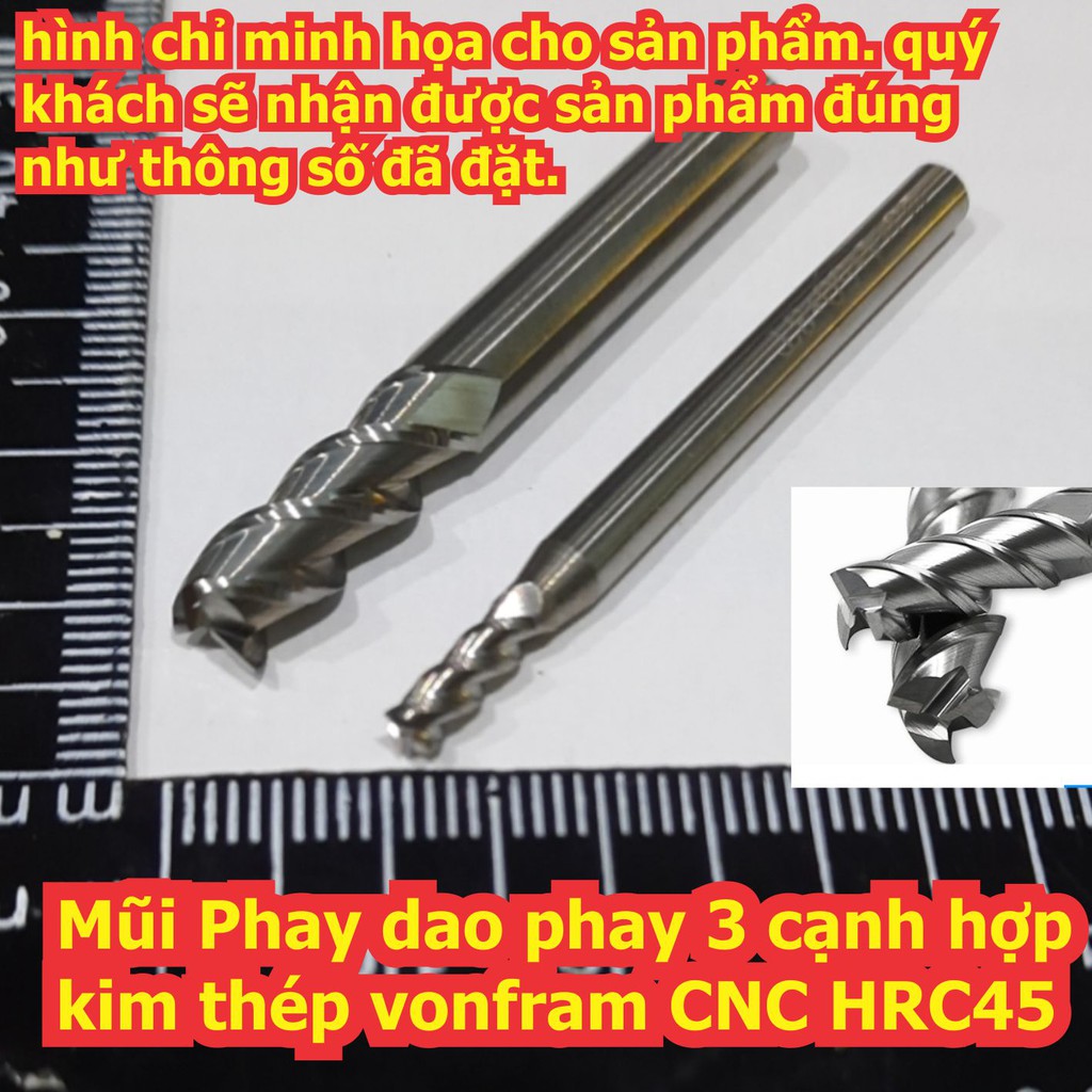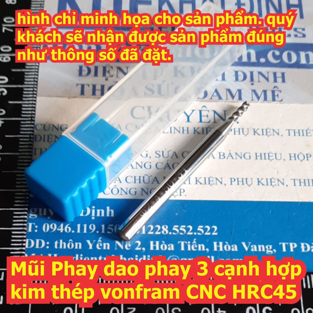 Giới thiệu Mũi Phay dao phay 3 cạnh hợp kim thép vonfram CNC HRC45 phi 2mm ~ 6mm kde7162