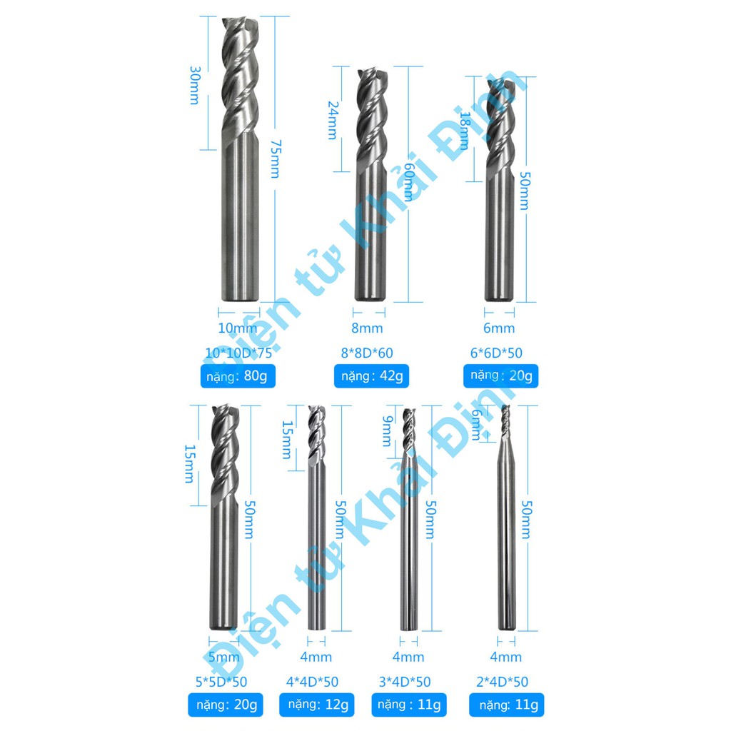 Mũi Phay dao phay 3 cạnh hợp kim thép vonfram CNC HRC45 phi 2mm ~ 6mm kde7162