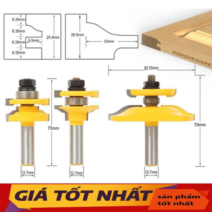 Bộ mũi phay gỗ cửa bếp ⚡️LOẠI TỐT⚡️ Mũi soi gỗ ghép ván cửa gắn máy cầm tay cốt 12.7mm