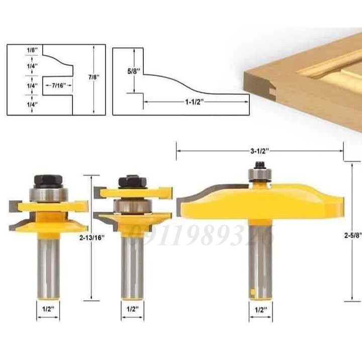 1 mũi đánh ván pano, 2 mũi ghép mộng, bộ 3 mũi đầy đủ