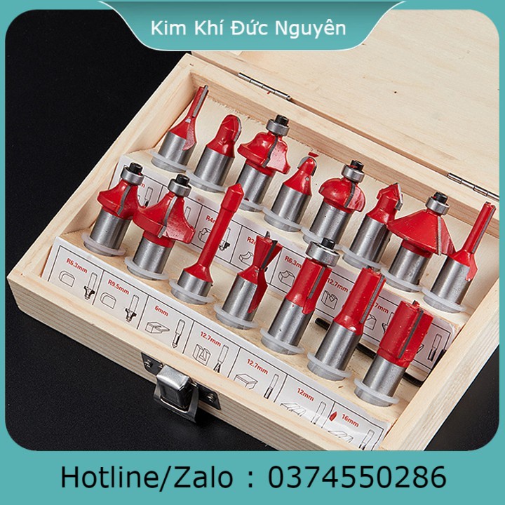 - Bộ mũi phay gỗ 12 món chuyên dùng cho máy phay cầm tay hoặc máy bàn router