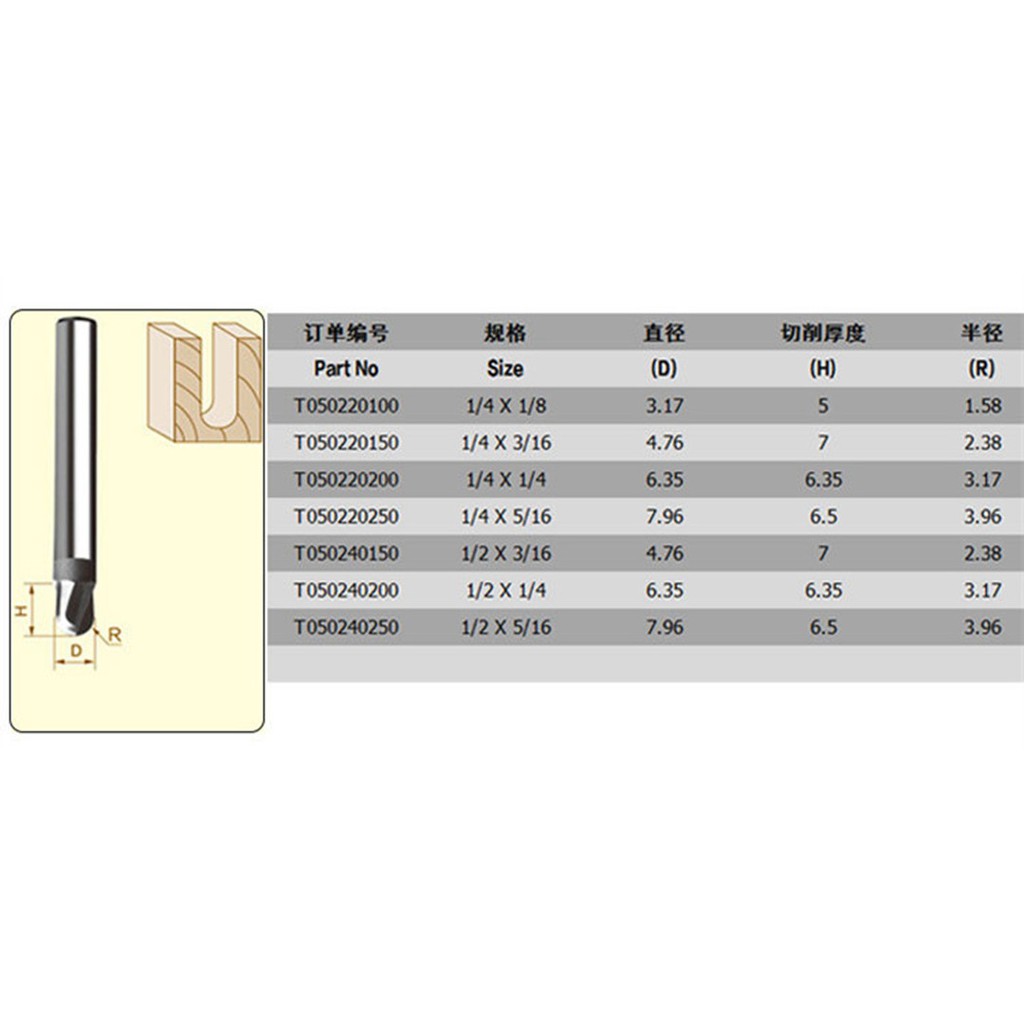 Mũi phay gỗ chạm tròn 6-50mm , cán 12.7mmDao được làm bằng chất liệu thép carbon 45 # và hợp kim YG8