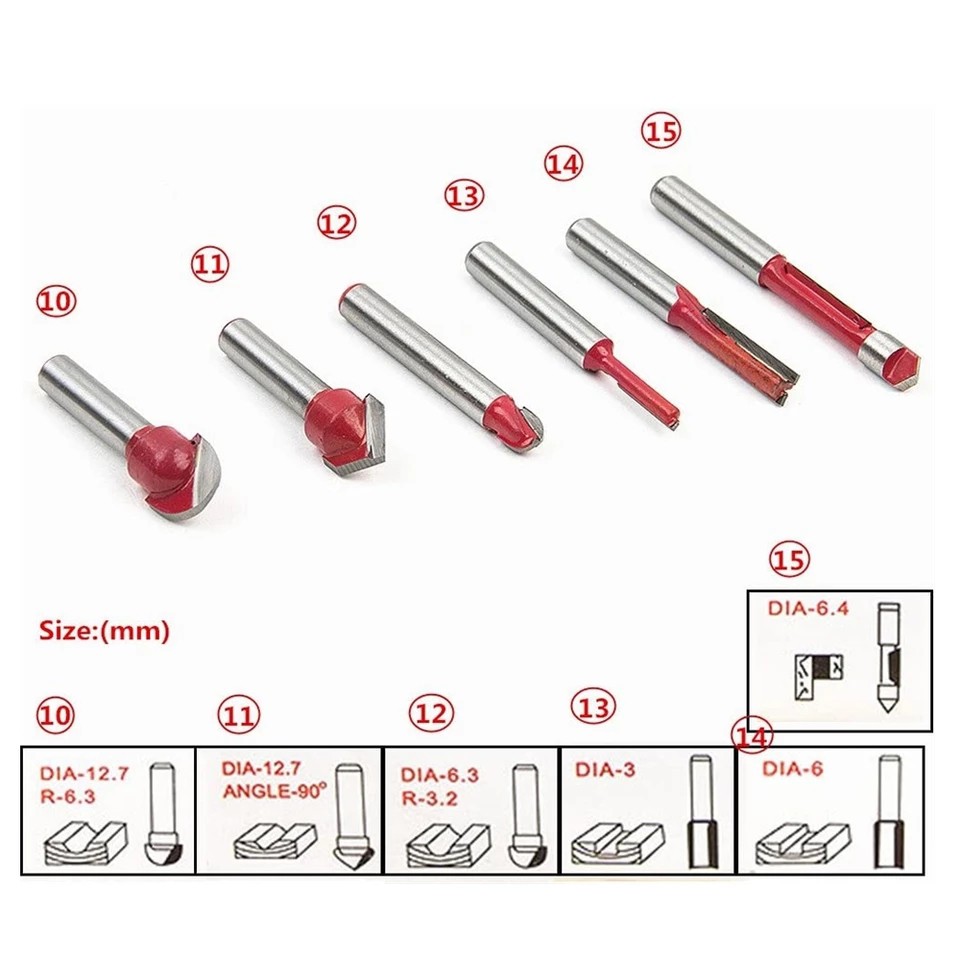 Nhà cửa & Đời sống > Dụng cụ & Thiết bị tiện ích > Dụng cụ > Cưa, máy cắt & máy mài || Bộ mũi phay gỗ cốt 6.35mm hoặc 12.7mm - BỘ 15 MŨI SOI GỖCòn hàng