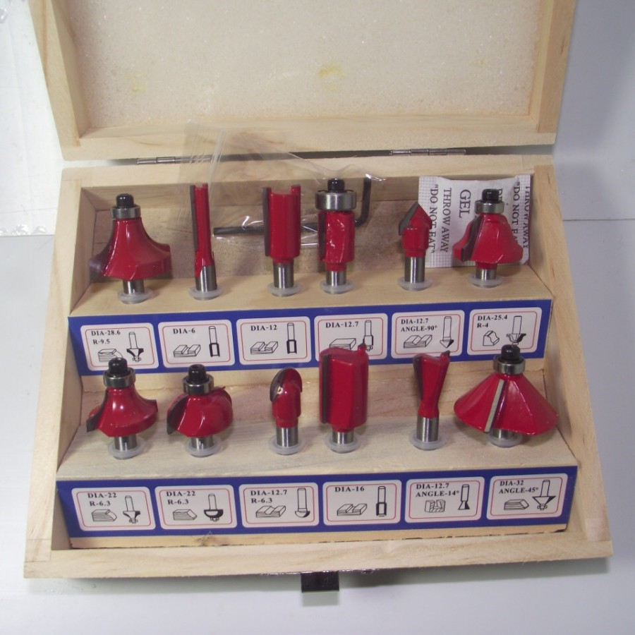 Bộ 12 mũi phay gỗ cốt 6,35mm chuyên dùng cho máy phay cầm tay hoặc máy bàn router