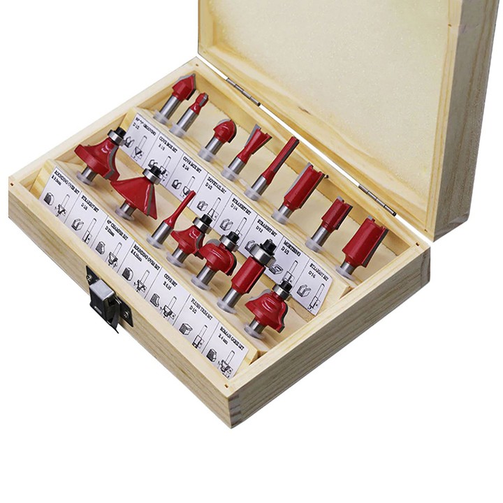 Nhà cửa & Đời sống > Dụng cụ & Thiết bị tiện ích > Dụng cụ > Hộp dụng cụ cầm tay || Bộ mũi phay gỗ, doa gỗ, đánh cạnh 15 mũi cốt 12.7mmCòn hàng