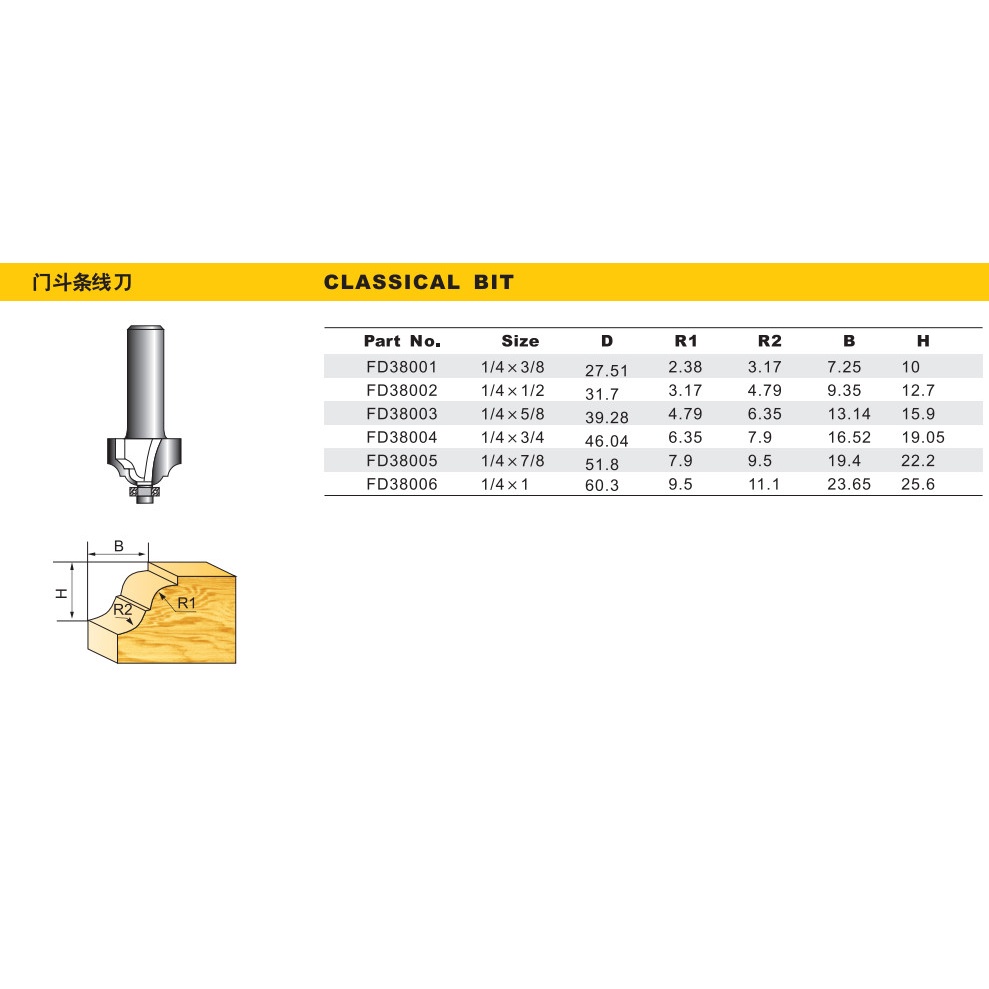 Giới thiệu Mũi phay gỗ hai hình, cốt 6.35mm-12.7mm (mũi router, mũi soi gỗ)