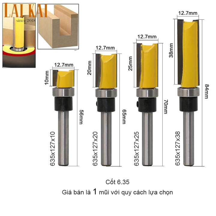 635x127x38 (Cốt 6.35mm; đường kính mũi 12.7mm; chiều dài lưỡi 38mm)
