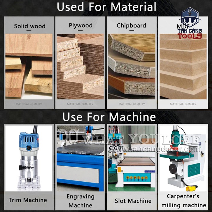 - Ứng dụng cho tất cả các loại gỗ cứng : Trắc, Cẩm, Hương, Lim, Đinh, Tần Bì , gỗ công nghiệp....