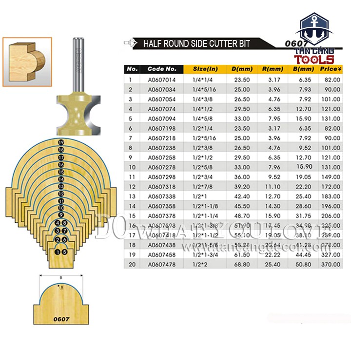 Mũi Router Bán Nguyệt Đánh Chỉ Lồi Arden R12.7 Cốt 12.7 mm* Mô Tả Sản Phẩm :