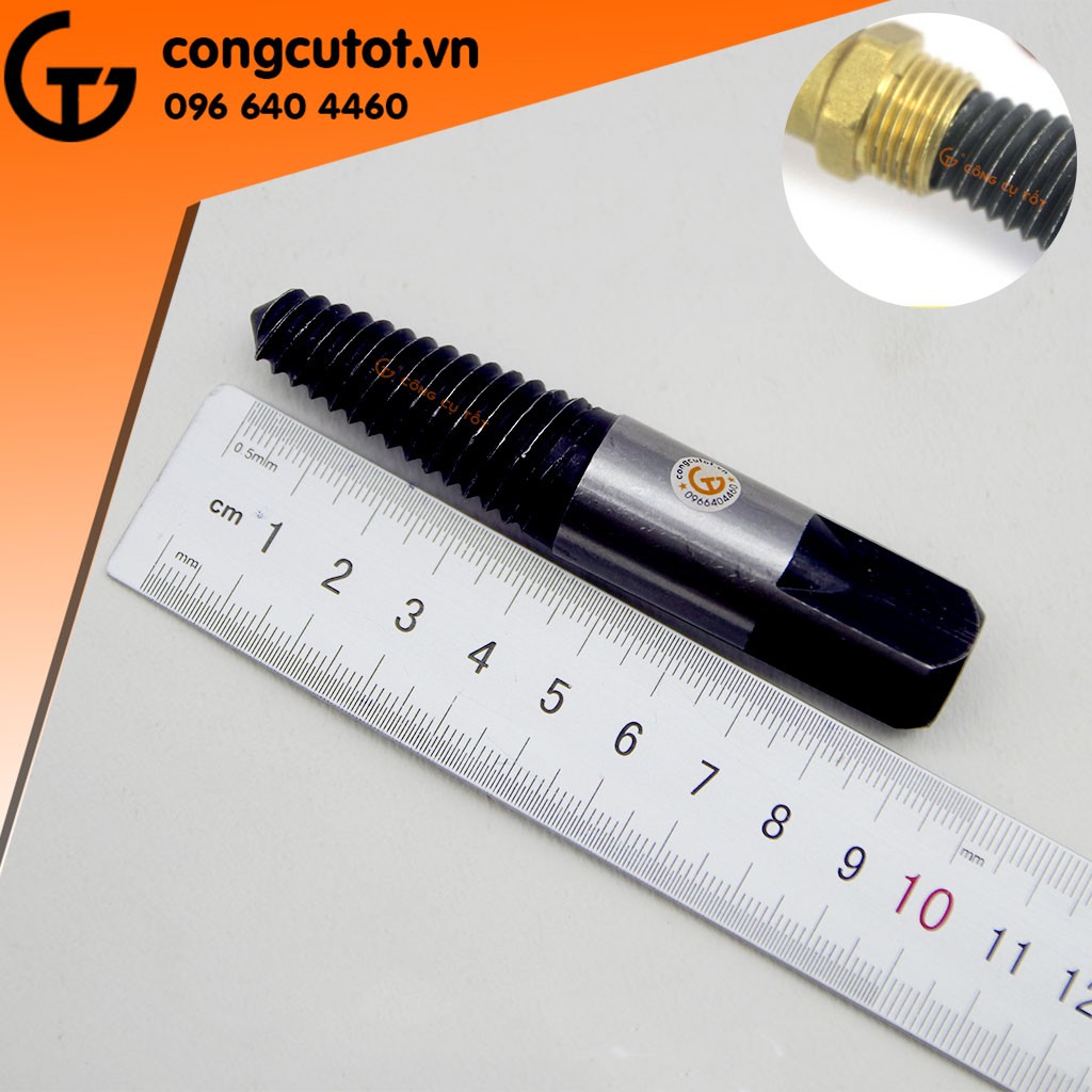Nguyên lý vận hành của mũi tháo đầu ống nước gãyMũi tháo đầu ống nước gãy là một chóp nón cụt được tạo ren ngược với ren trong của các đầu cấp nước, đầu mũi tháo đầu ống nước gãy này làm bằng thép cứng có khả năng ăn vào các vật liệu của đầu ống gãy như nhựa PVC, đồng vàng, kẽm. Khi quay ren ngược chiều kim đồng hồ, đầu mũi này sẽ càng bám chặt với phần ren gẫy thành một khối và dần tháo phần ren gãy này ra khỏi đầu cấp nước.