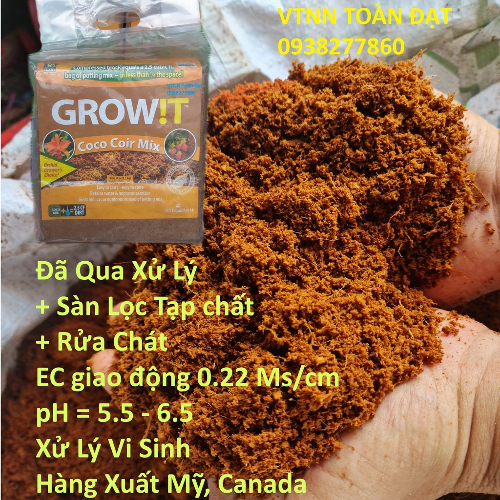 Mụn Xơ Dừa Đã Qua Xử Lý Coco Coir Mix, Mụn dừa GROW IT Giá Thể Trồng Cây, hàng chuẩn xuất khẩu