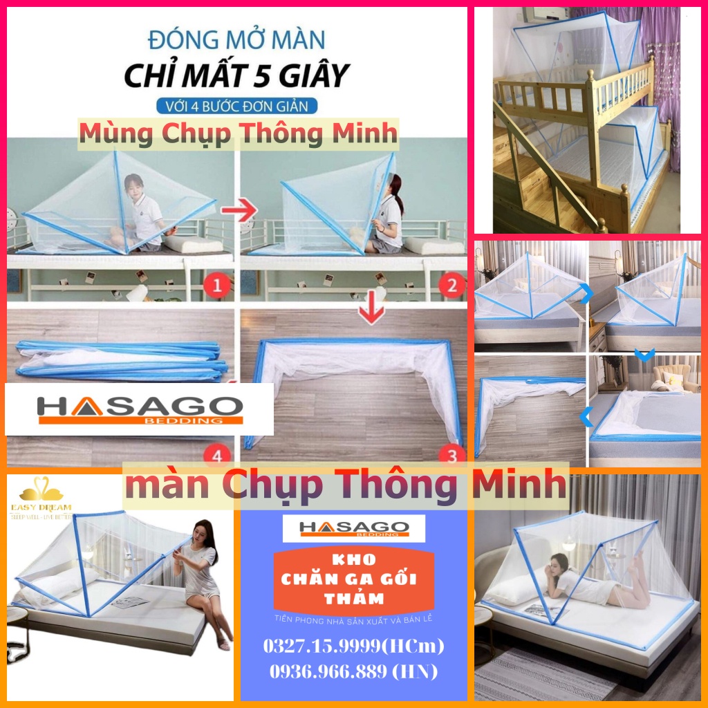 Mùng Chụp Màn Gấp Thông Minh Chống Muỗi Đủ Kích Thước 1m2 1m4 1m6 1m8Khung Chắc chắn