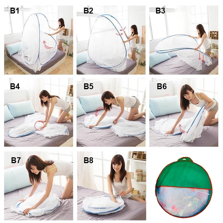 Nhà cửa & Đời sống > Chăn ga gối nệm > Mùng/ Màn chống muỗi || Mùng chụp người lớn tự bung đỉnh vuông, đỉnh chóp - Màn bung gấp gọn 1m2 1m6 1m8 2m2 cao cấp AMALIFECòn hàng