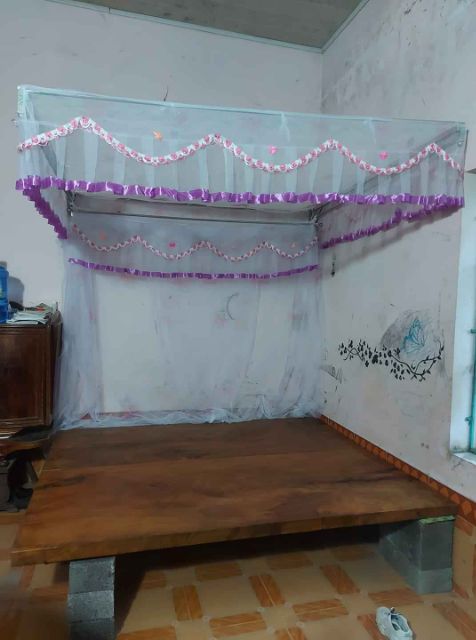 Đình màn được buộc cố định trên khung màn,