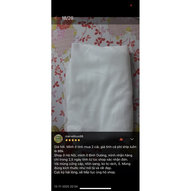 Sản phẩm mùng ngủ được may cẩn thận, tỉ mỉ với những đường may chắc chắn, gân màn và chân màn đều được may gấp mép nối lại giống như gấu quần áo.