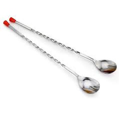 Công Dụng: Tay cầm của bar spoons có dạng xoắn dùng chế ruợu hoặc siro để phân tầng trong pha chế. Bar spoons có tay cầm dài để có thể chạm vào đáy cốc hoặc bình shaker.
