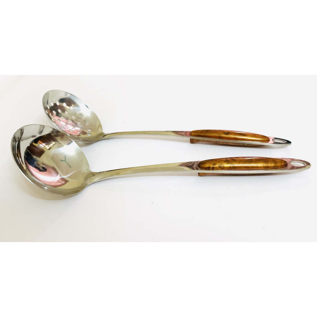 Bộ muôi canh, muôi thủng inox cán ốp cỡ to 9x35cmChất liệu: inox cao cấp ,quai nhựa giả gỗ chống nóng