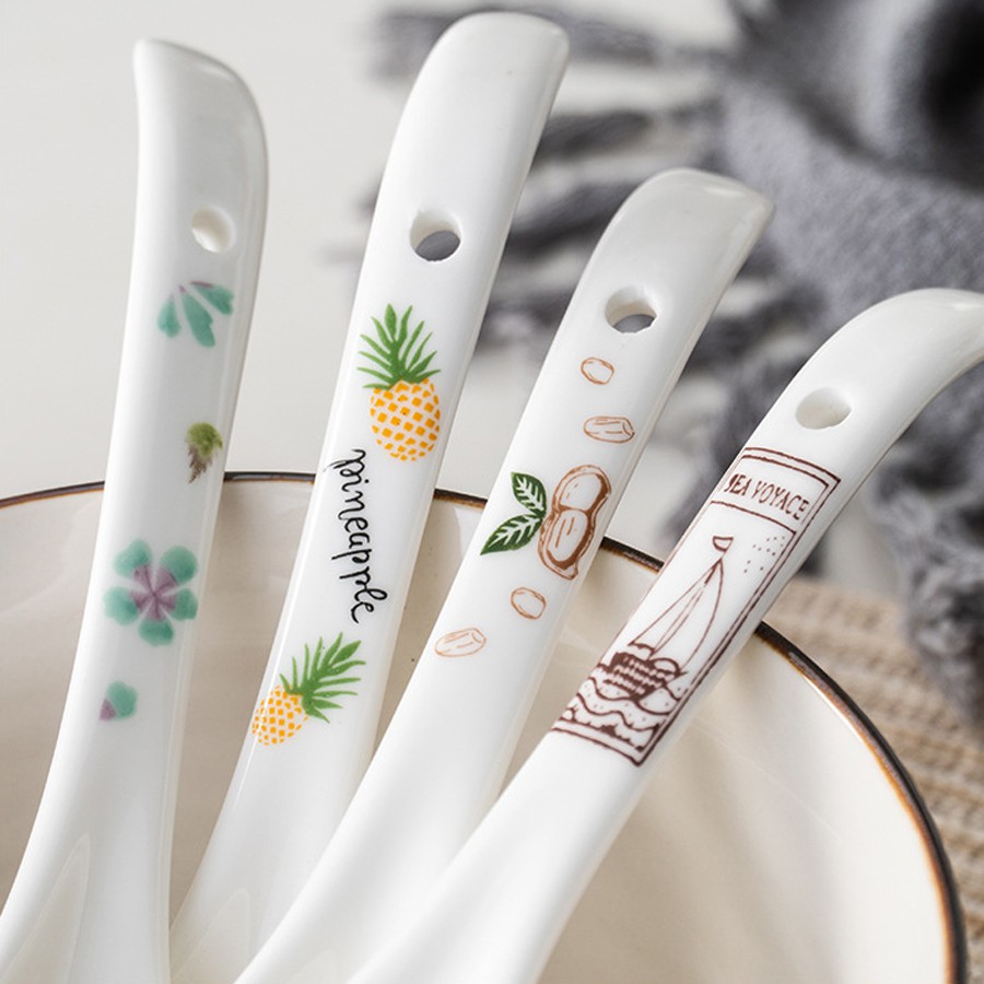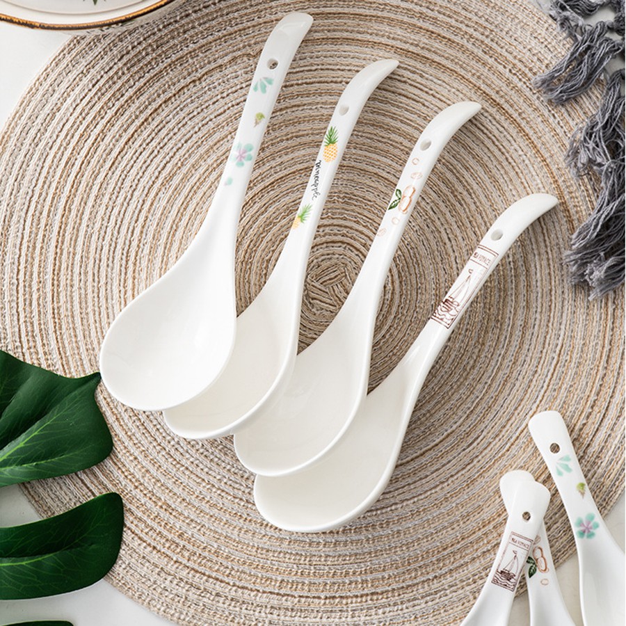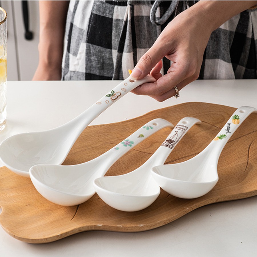 Nhà cửa & Đời sống > Bộ đồ bàn ăn > Bộ dao kéo || Muôi canh - muỗng múc canh sứ trắng tay cầm nhiều họa tiết cực xinhCòn hàng