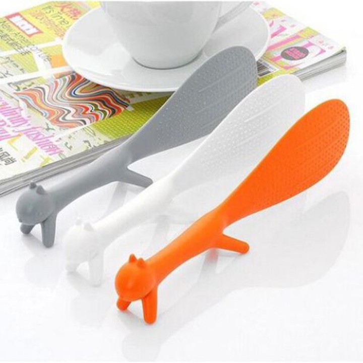 Muôi cơm chống dính hình con sóc dễ thương - Thìa xúc xới cơm nhựa cao cấp có giá đỡ