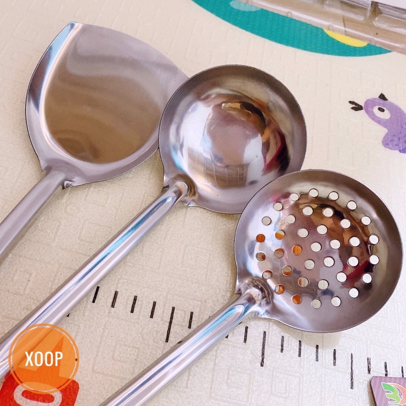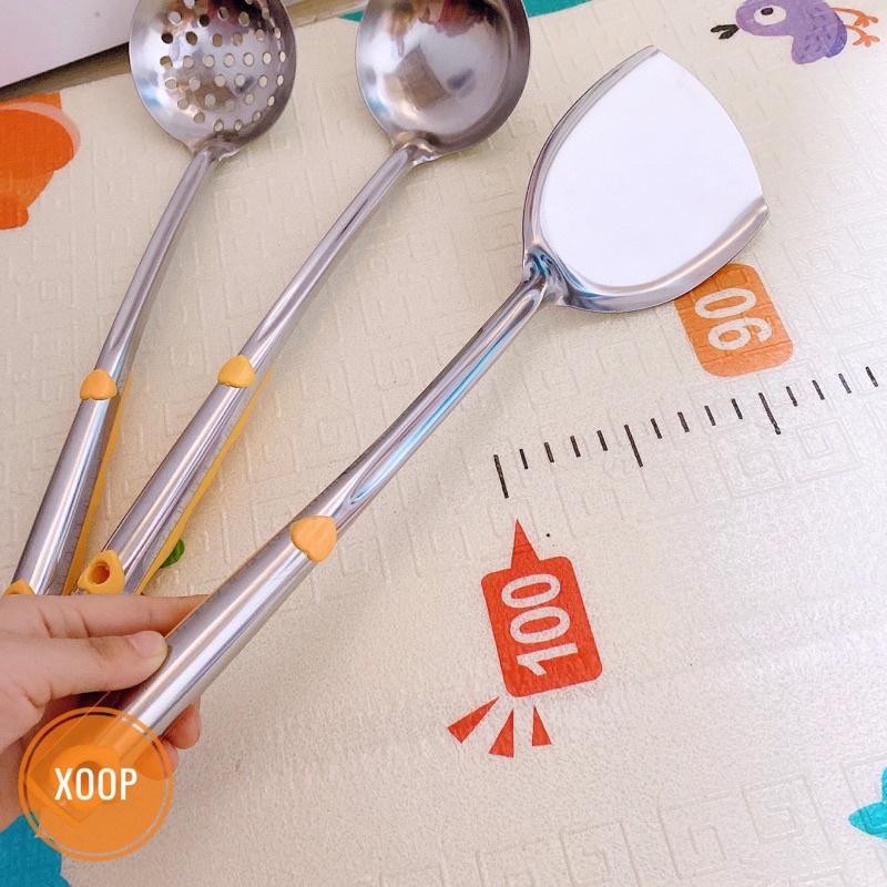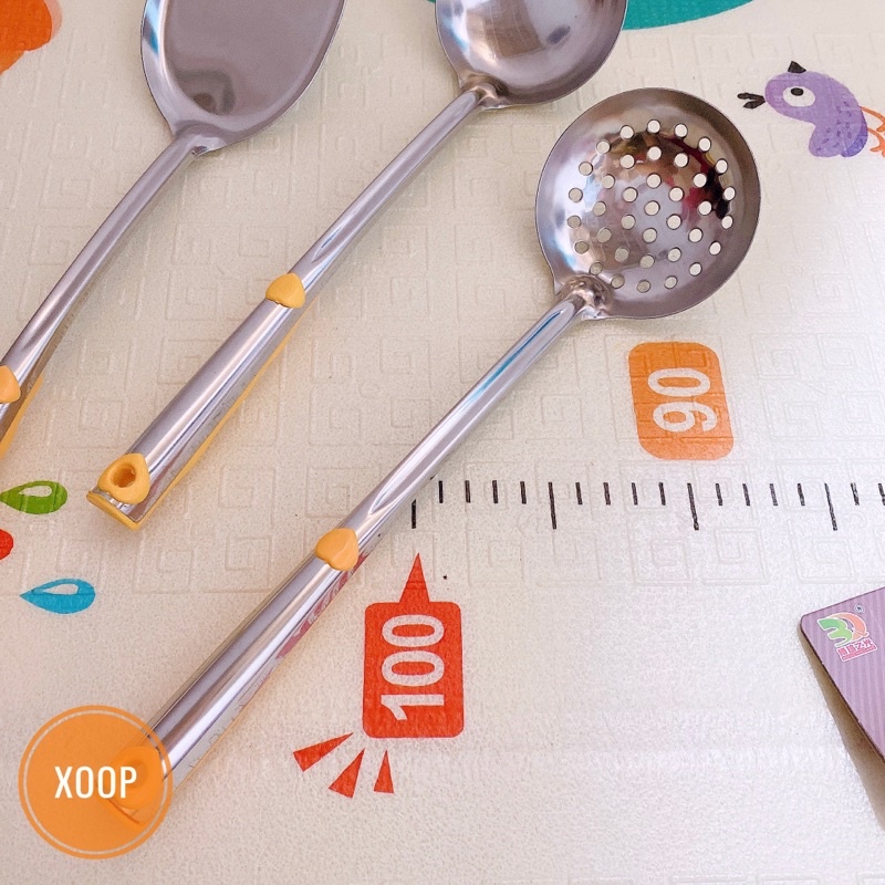 💛 Sản phẩm: Bộ muôi inox cao cấp cán vàng ( muôi thủng - muôi canh - xẻng xào)