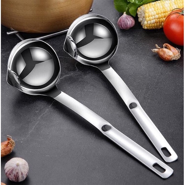 Nhà cửa & Đời sống > Dụng cụ nhà bếp > Cây vét bột & đồ gắp thức ăn || Muôi inox lọc dầu mỡ, tách dầu mỡ đồ dùng bếp tiện lợiCòn hàng