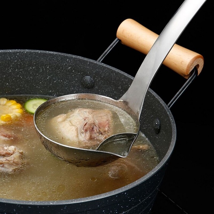 Muỗng tách dầu mỡ 1 cách dễ dàng đồng thời sử dụng như 1 môi canh thông thường.