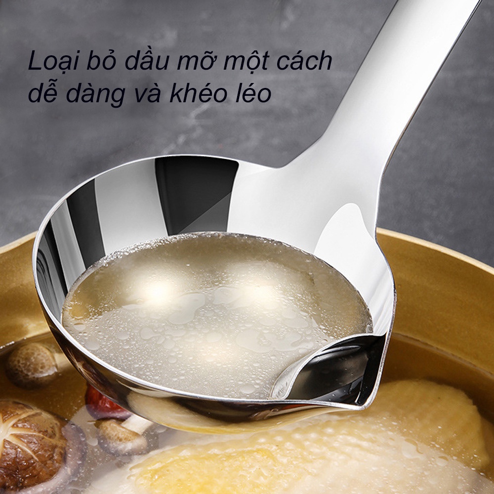 Muôi lọc tách dầu mỡ, muôi canh rót nghiêng tách dầu mỡ