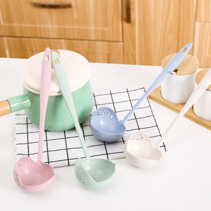 Nhà cửa & Đời sống > Dụng cụ nhà bếp > Khác || Muôi múc canh chất liệu nhựa lúa mạch vá múc canh cao cấp cái môi múc nước lẩu có sẵn lỗ gạn nước nhiều màu sắc cute V27Còn hàng