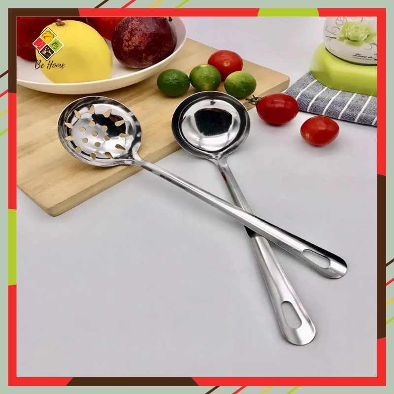 Muôi Múc Canh Muôi Thủng Inox 304 BEHOME Bộ Muôi Inox Cao Cấp Dày Dặn Chắc Chắn Cán Dài Cầm Chắc Tay