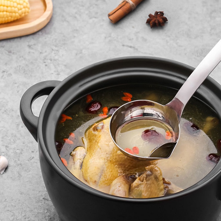 Muỗng tách dầu mỡ 1 cách dễ dàng đồng thời sử dụng như 1 môi canh thông thường.