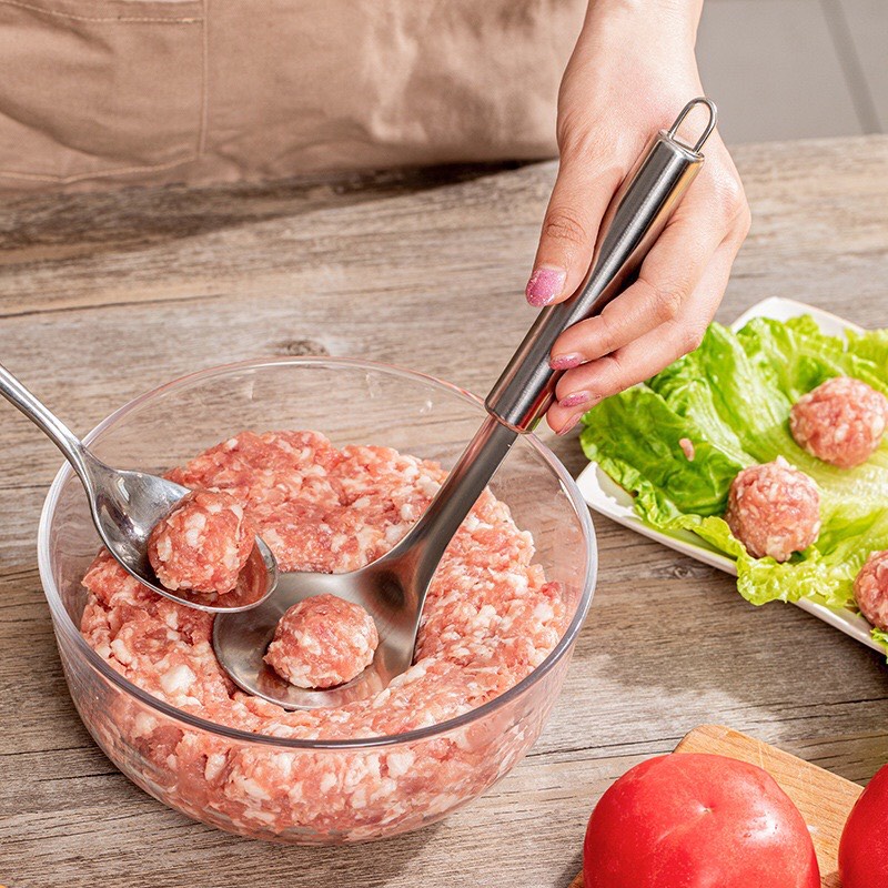 Nhà cửa & Đời sống > Dụng cụ nhà bếp > Cây vét bột & đồ gắp thức ăn || Muôi nặn mọc inox , thìa làm mọc nặn thịt viên tiện lợiCòn hàng